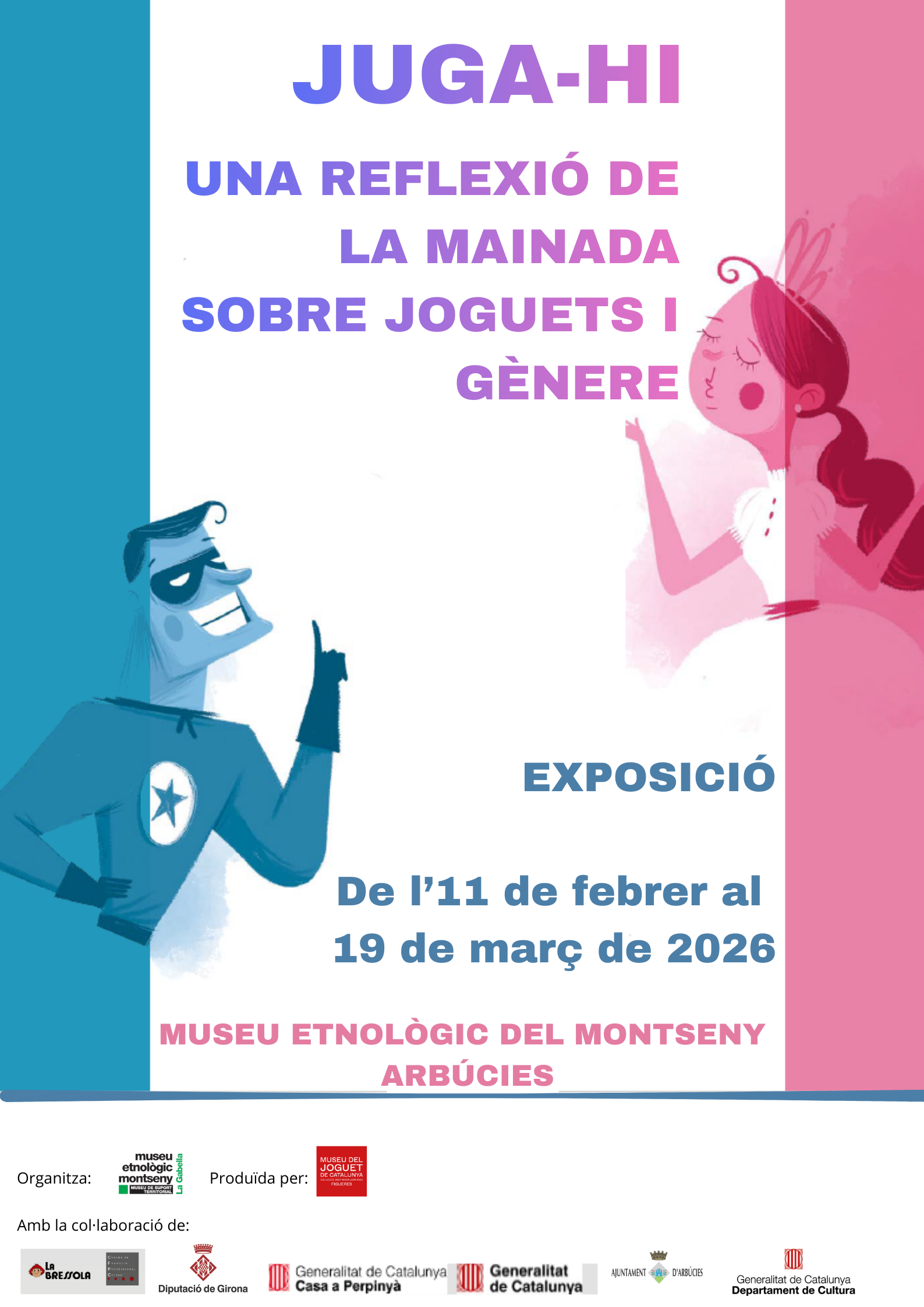 Arriba a Arbúcies l'exposició produïda pel Museu del Joguet i l'escola La Bressola que reflexiona sobre el paper de les joguines en la construcció de gènere i busca transformar la mirada social cap als joguets i jocs actuals. En l'exposició també s'hi mostres objectes dels fons del MEMGA, dibuixos i fotografies de la mainada del Montseny - i d'Arbúcies en particular-, en temps passats quan els jocs i les joguines estaven clarament diferenciats segons el gènere.