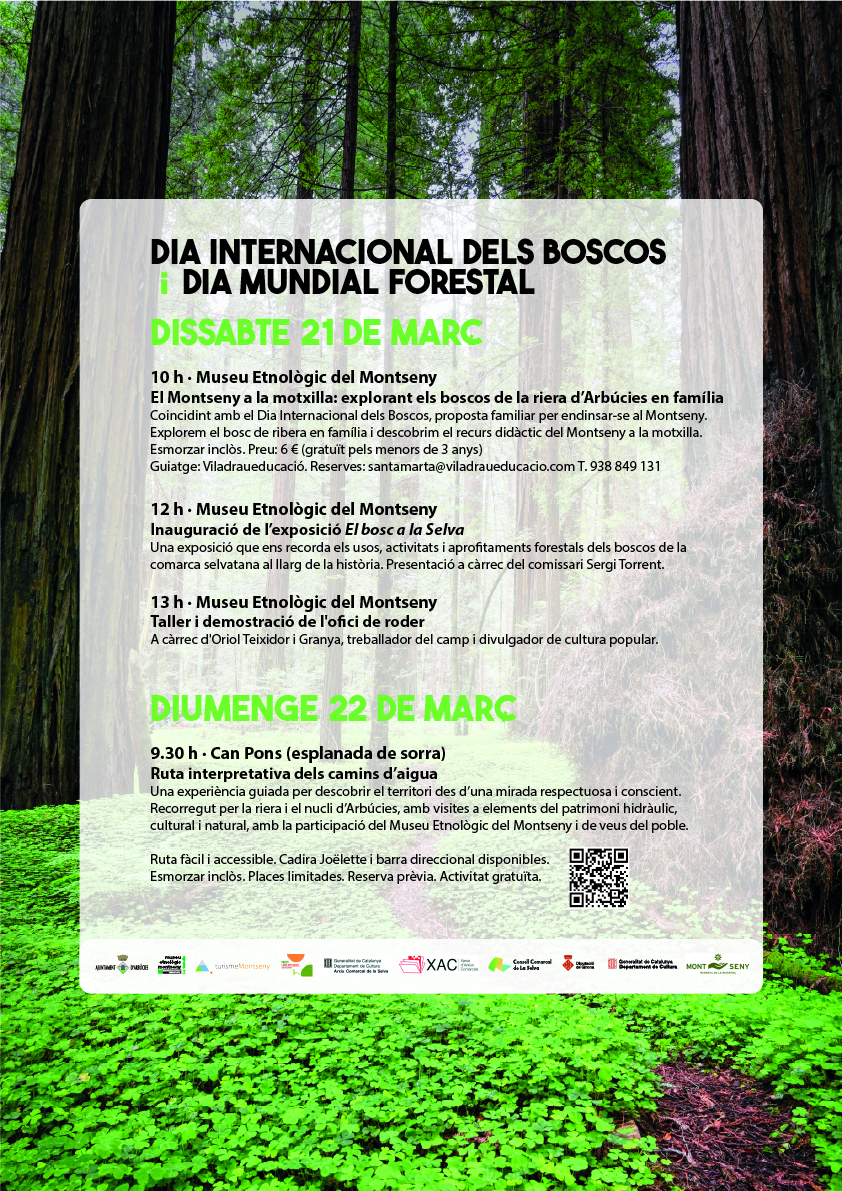 Coincidint amb el Dia Internacional dels Boscos, s'organitzen diverses activitats: una proposta familiar per endinsar-se al Montseny: "Explorem el bosc de ribera en família i descobrim el recurs didàctic del Montseny a la motxilla", juntament amb Turisme Montseny.