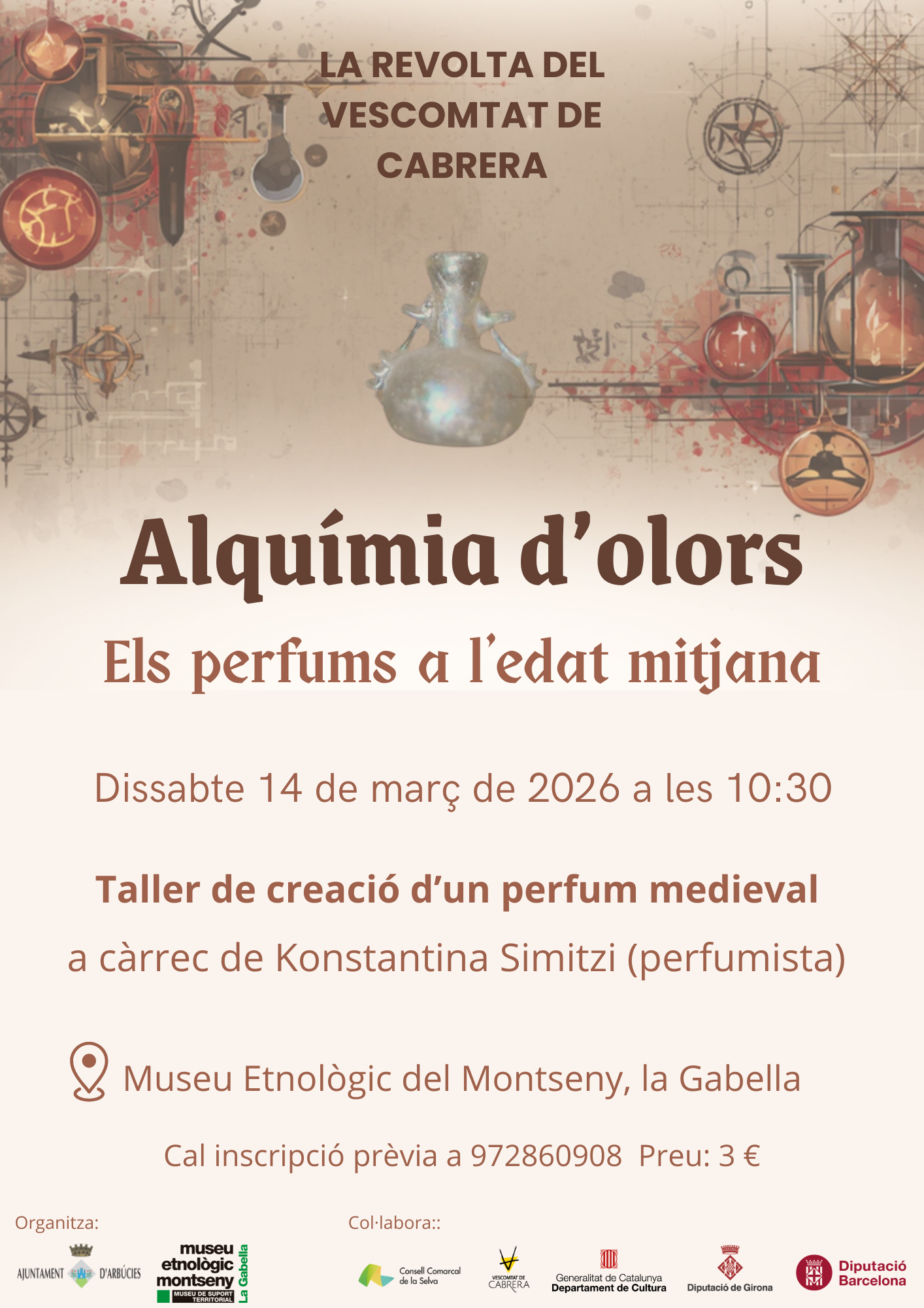 En el marc dels actes de la recreació històrica de "La revolta dels Cabrera", el Museu Etnològic del Montseny organitza un taller de creació d'un perfum medieval a càrrec de Konstantina Simitzi (perfumista).