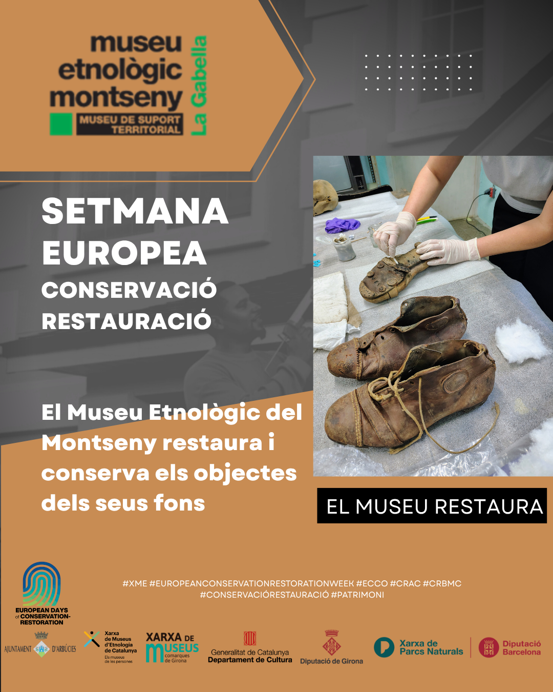 En motiu de la SE de la Conservació i restauració volem donar a conèixer i visibilizar les tasques fonaments de les professionals de conservació que actuen en els fons del museu i permeten la preservació dels objectes, ja siguin exposats o en reserva. Aprofitant la darrera exposició del MEMGA es mostraran alguns dels objectes que darrerament s'han restaurat, concretament unes botes i pilota de l'equip de futbol d'Arbúcies de la dècada de 1930.